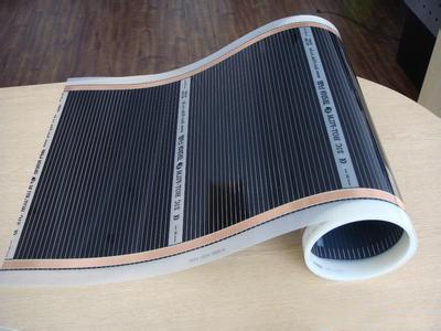 3、國產(chǎn)電熱膜的寬度一般在30-40CM,這樣做的目的是讓銅帶電流源負(fù)載盡量小一點,熱損也會降低。