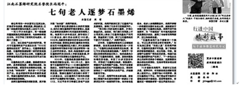 70歲高齡的馮冠平,早就可以功成身退、頤養(yǎng)天年,卻依然在創(chuàng)業(yè)創(chuàng)新的道路上奮進(jìn)不止。這源于他心中的夢想:通過石墨烯這個(gè)平臺,我們完全有可能把中國制造變成中國創(chuàng)造,實(shí)現(xiàn)彎道超車,希望在這一領(lǐng)域能培育一些世界級的企業(yè)!