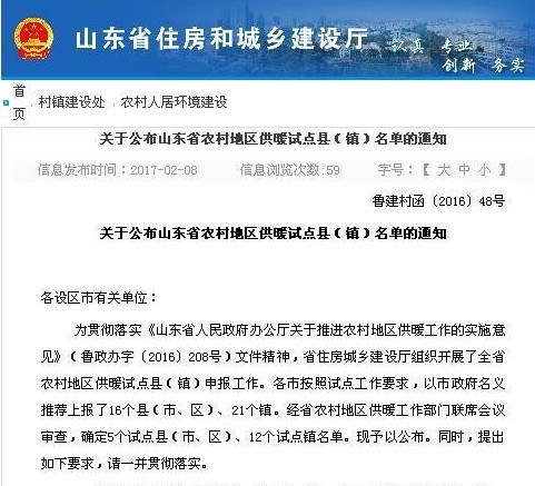 近日,山東省住房和城鄉(xiāng)建設(shè)廳為貫徹落實(shí)《山東省人民政府辦公廳關(guān)于推進(jìn)農(nóng)村地區(qū)供暖工作的實(shí)施意見》(魯政辦字〔2016〕208號(hào))文件精神,省住房城鄉(xiāng)建設(shè)廳組織開展了全省農(nóng)村地區(qū)供暖試點(diǎn)縣(鎮(zhèn))申報(bào)工作。各市按照試點(diǎn)工作要求,以市政府名義推薦上報(bào)了16個(gè)縣(市、區(qū))、21個(gè)鎮(zhèn)。經(jīng)省農(nóng)村地區(qū)供暖工作部門聯(lián)席會(huì)議審查,確定5個(gè)試點(diǎn)縣(市、區(qū))、12個(gè)試點(diǎn)鎮(zhèn)名單?,F(xiàn)予以公布。同時(shí),提出如下要求,請一并貫徹落實(shí)。